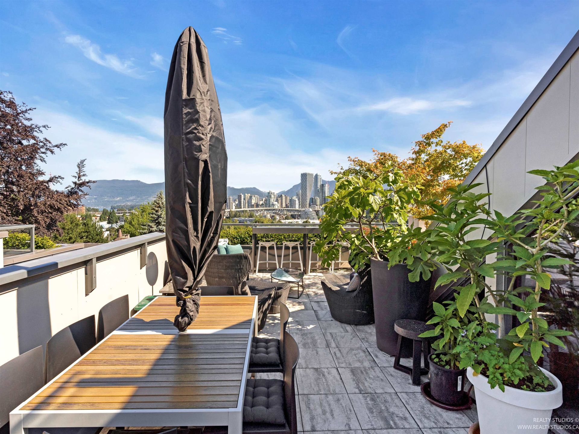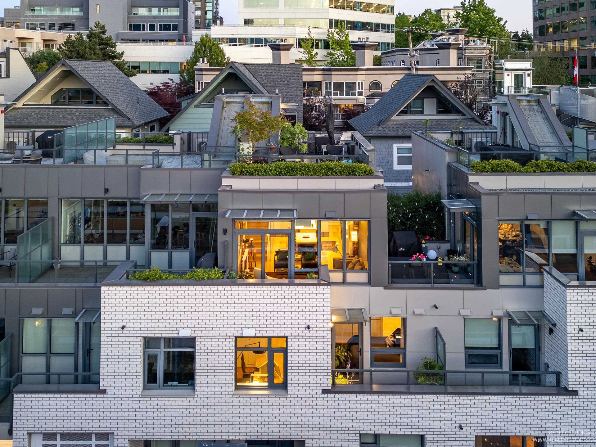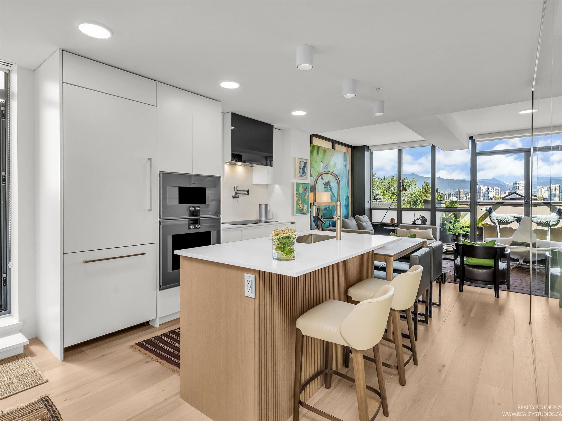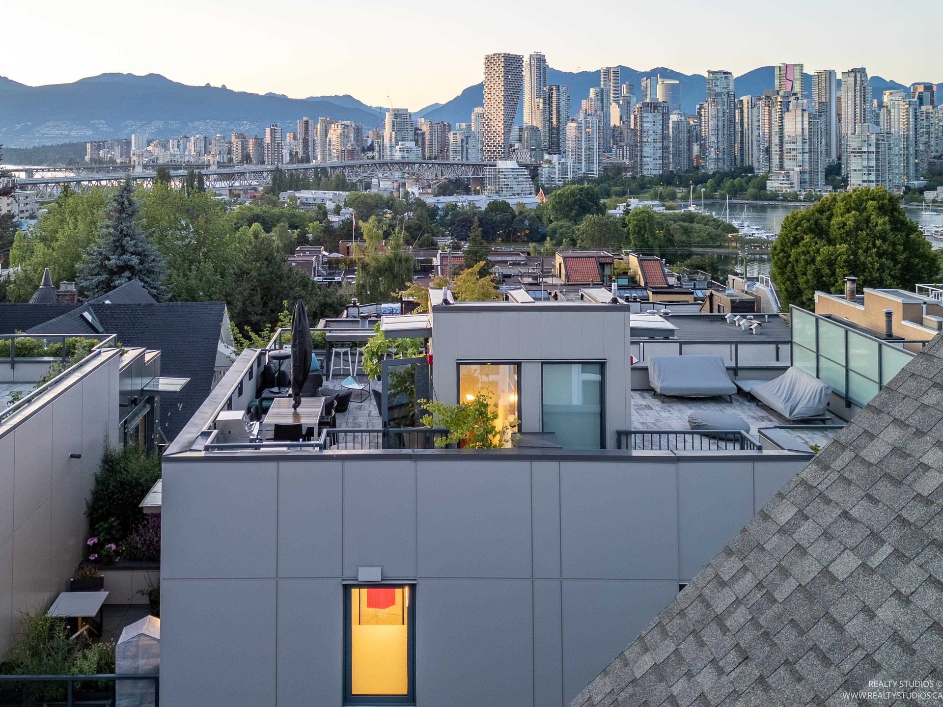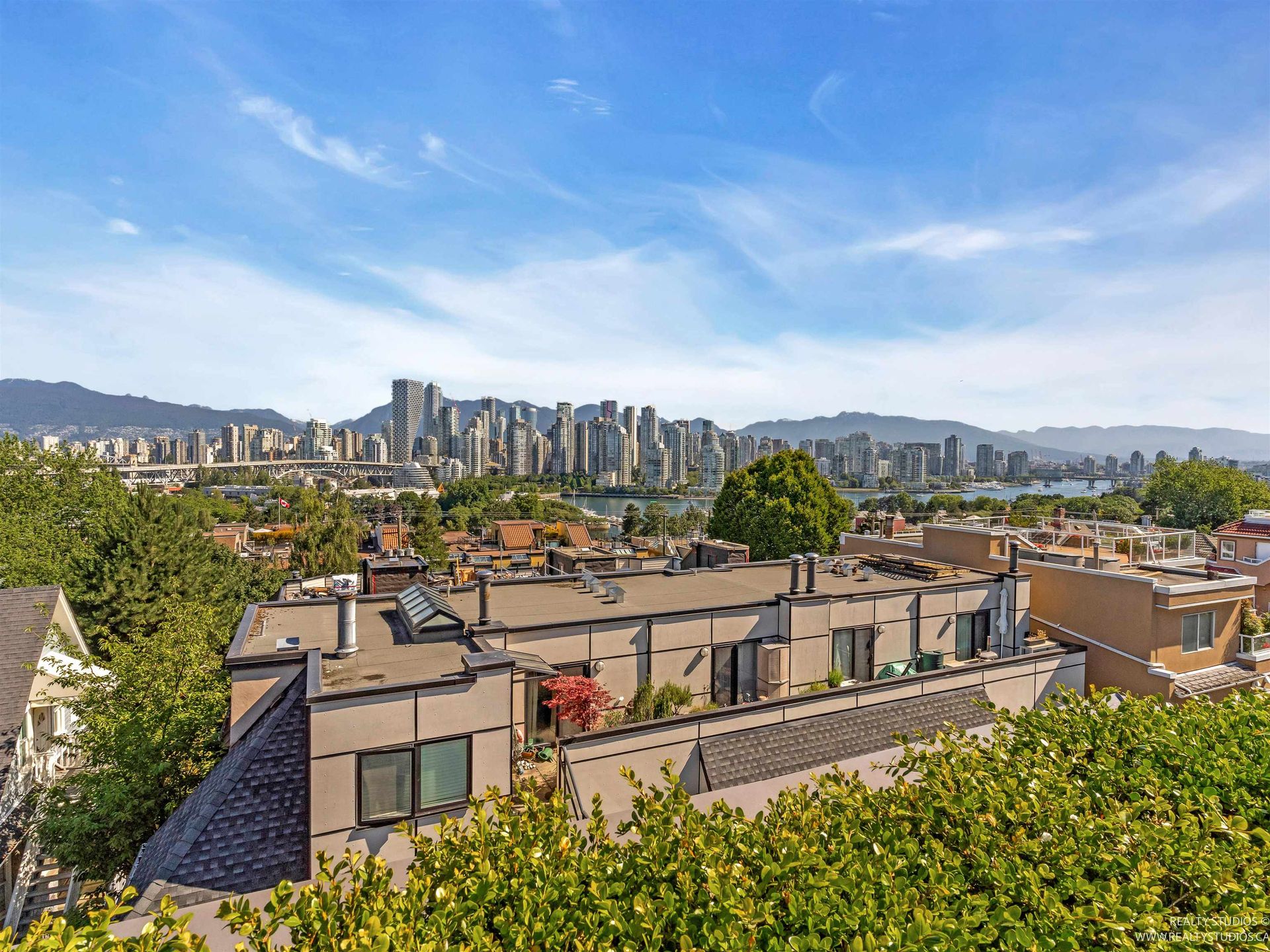 This concrete townhome in heart of Fairview offers location + high end finish! Built in 2023, 3 bed luxury home w/ AC offers superb panoramic views towards downtown, mountains & False Creek. Reverse plan offers beds on main level w/ open plan kitchen/dining/living taking advantage of views upstairs. Triple paned windows! Engineered Canadian oak thruout. Kitchen features upgraded Gaggenau & Miele appliances incl speed oven, coffee machine & induction cooktop. Wine fridge & warming drwr complete the package in addition to a pot filler. Private elevator takes you from 2 EV-ready pkg directly to both levels. 4 outdoor spaces incl terrace off kitchen & roof deck offering jaw dropping views to downtown. Steps to shopping, services & Granville Island. Just 2 blocks from upcoming Broadway SkyTrain